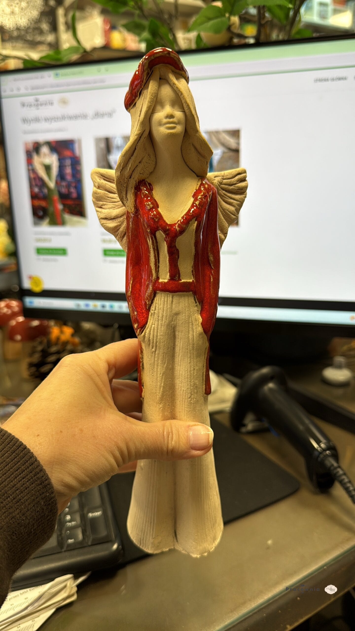 To idealny pomysł na prezent pełen znaczenia – na urodziny, święta, ślub czy jako drobny gest wsparcia. Anioł w domu to nie tylko piękna ozdoba, ale też talizman. Figurka wykonana ręcznie, szkliwiona. Wysokość 27cm. SKU: AN-05 EAN: