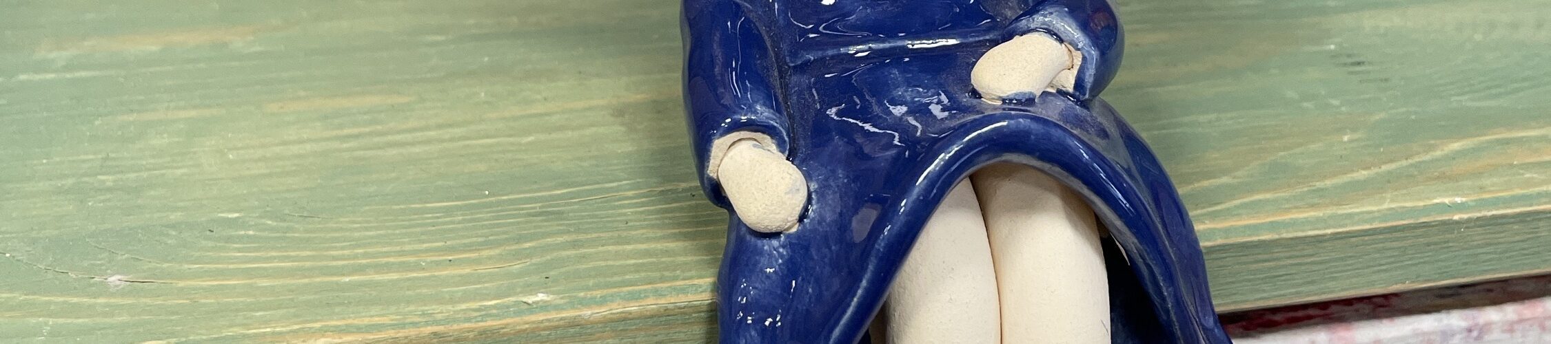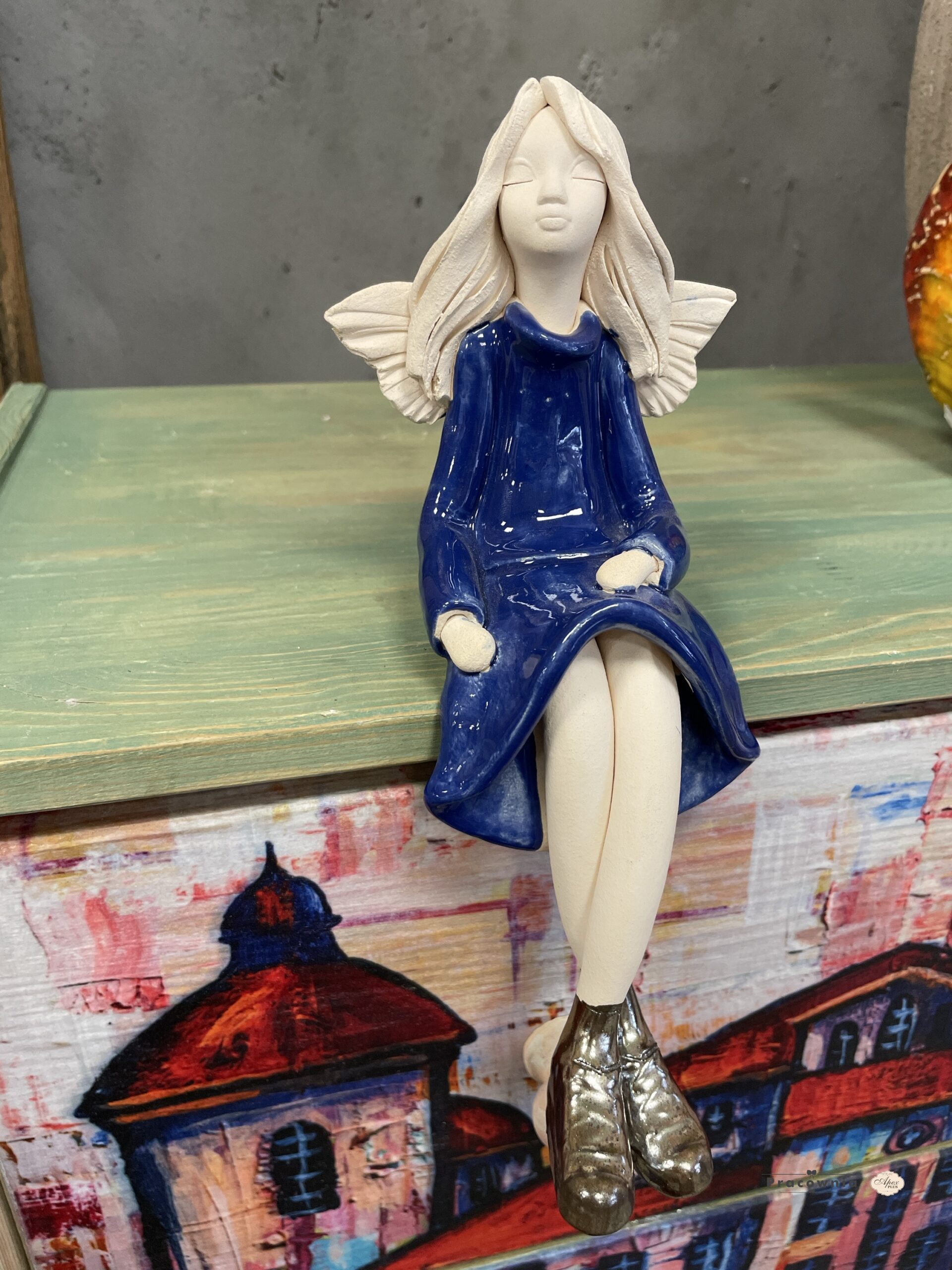 Anioł siedzący w glanach (Patyczak) niebieski