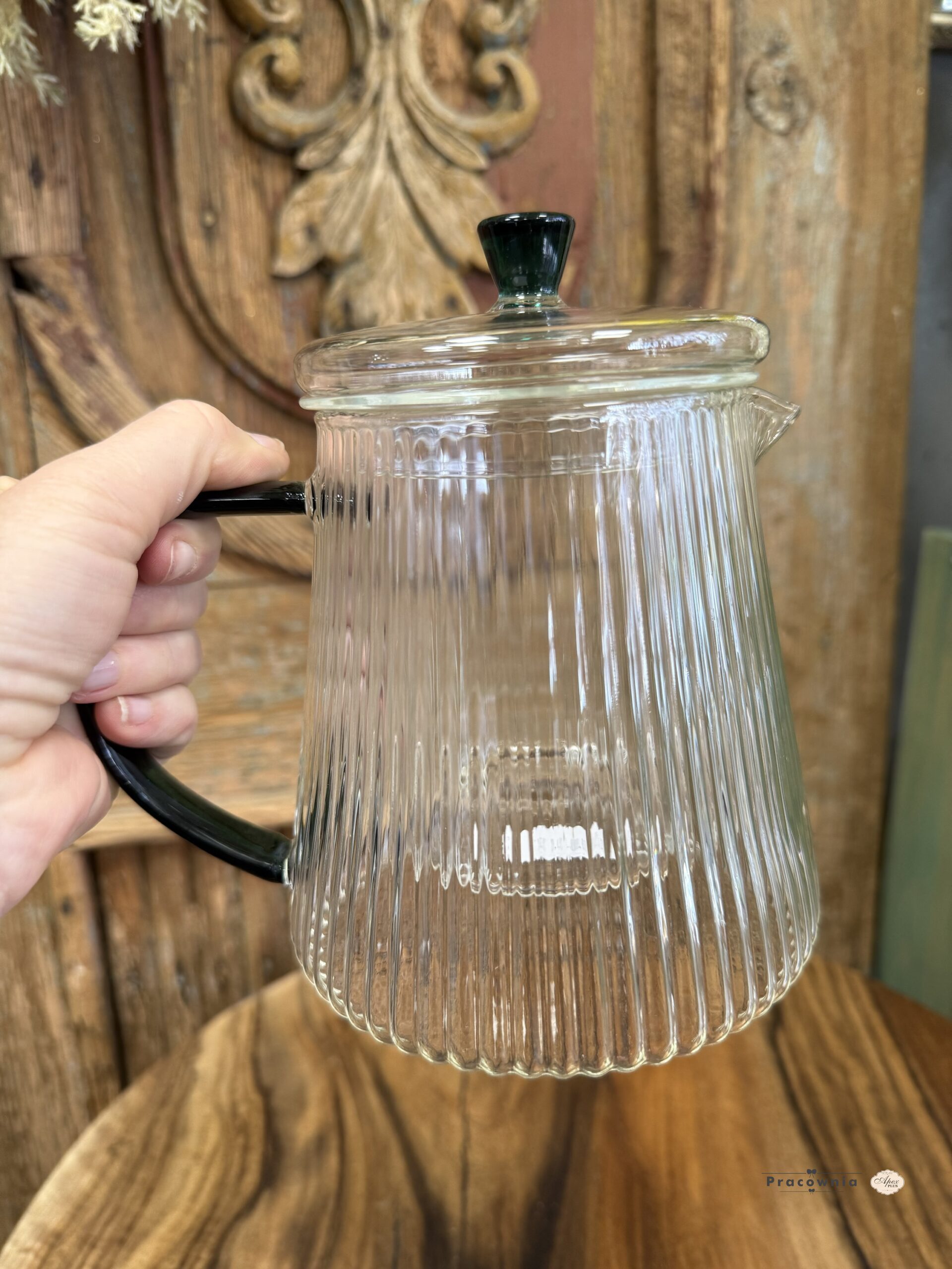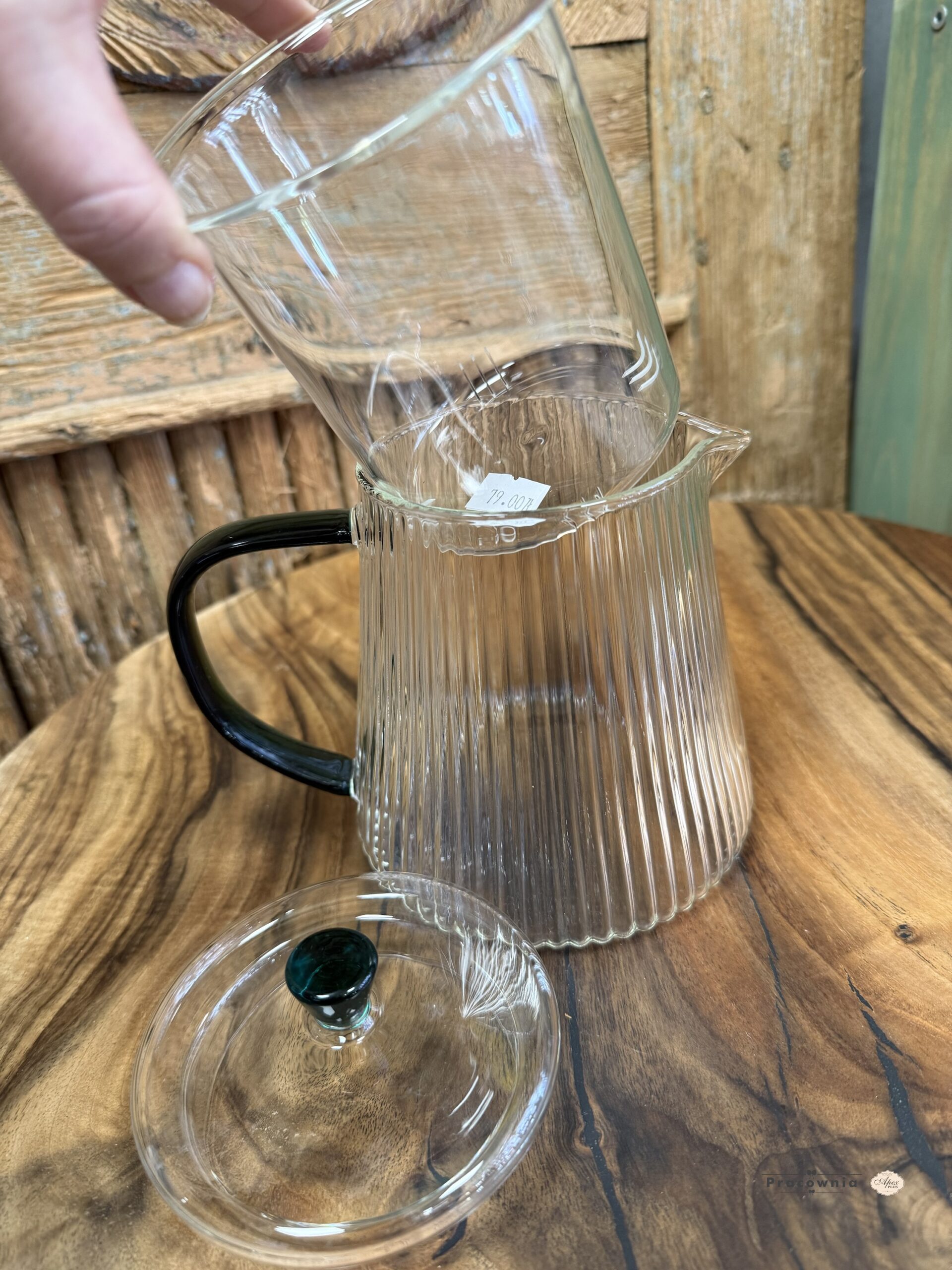 Wykonany ze szkła borokrzemowego, które jest odporne na wysoką temperaturę. Dzbanek jest wyposażony w szklany filtr, który sprawdzi się przy parzeniu kawy czy herbaty. JACK SKU: 25 EAN: 5907696074689
