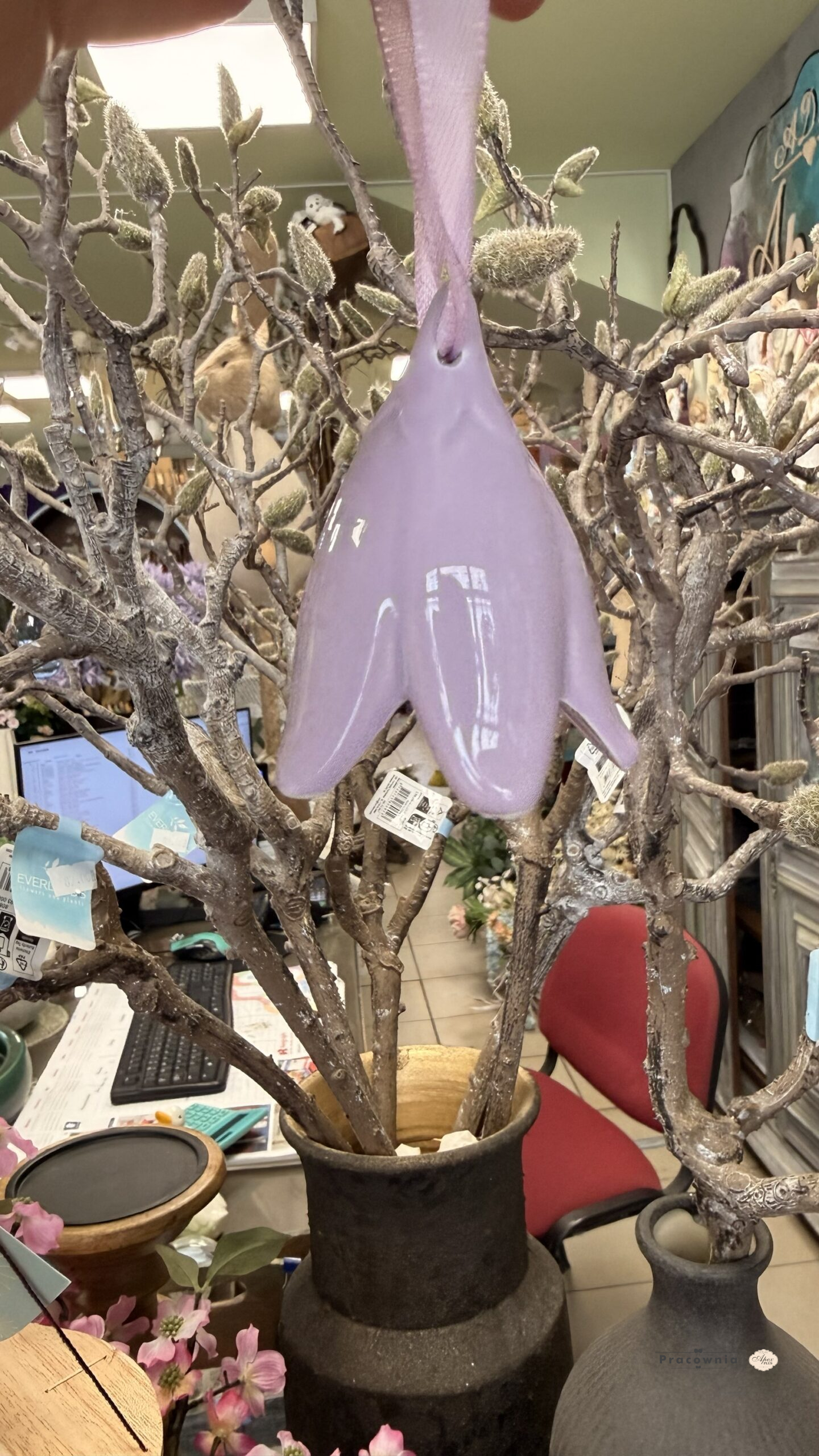 Ceramiczny dzwoneczek w kształcie kwiatka – idealny do stworzenia wiosennej, przytulnej atmosfery. Pięknie prezentuje się zawieszony przy oknie, na gałązkach lub jako element dekoracyjny kompozycji. Wys. 6 cm. szer. 5 cm. SKU: 201471/1 EAN: