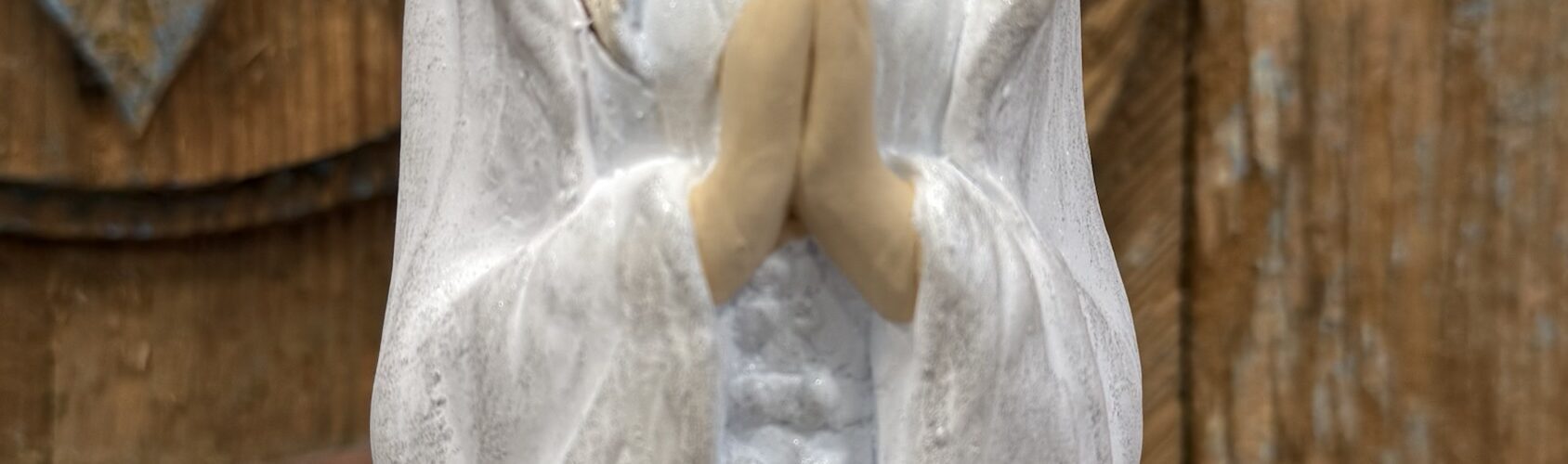 Figurka Maryja różańcowa biało-błękitna. Ręcznie robiona ceramiczna figurka. wys. 39 cm SKU: 194 EAN: