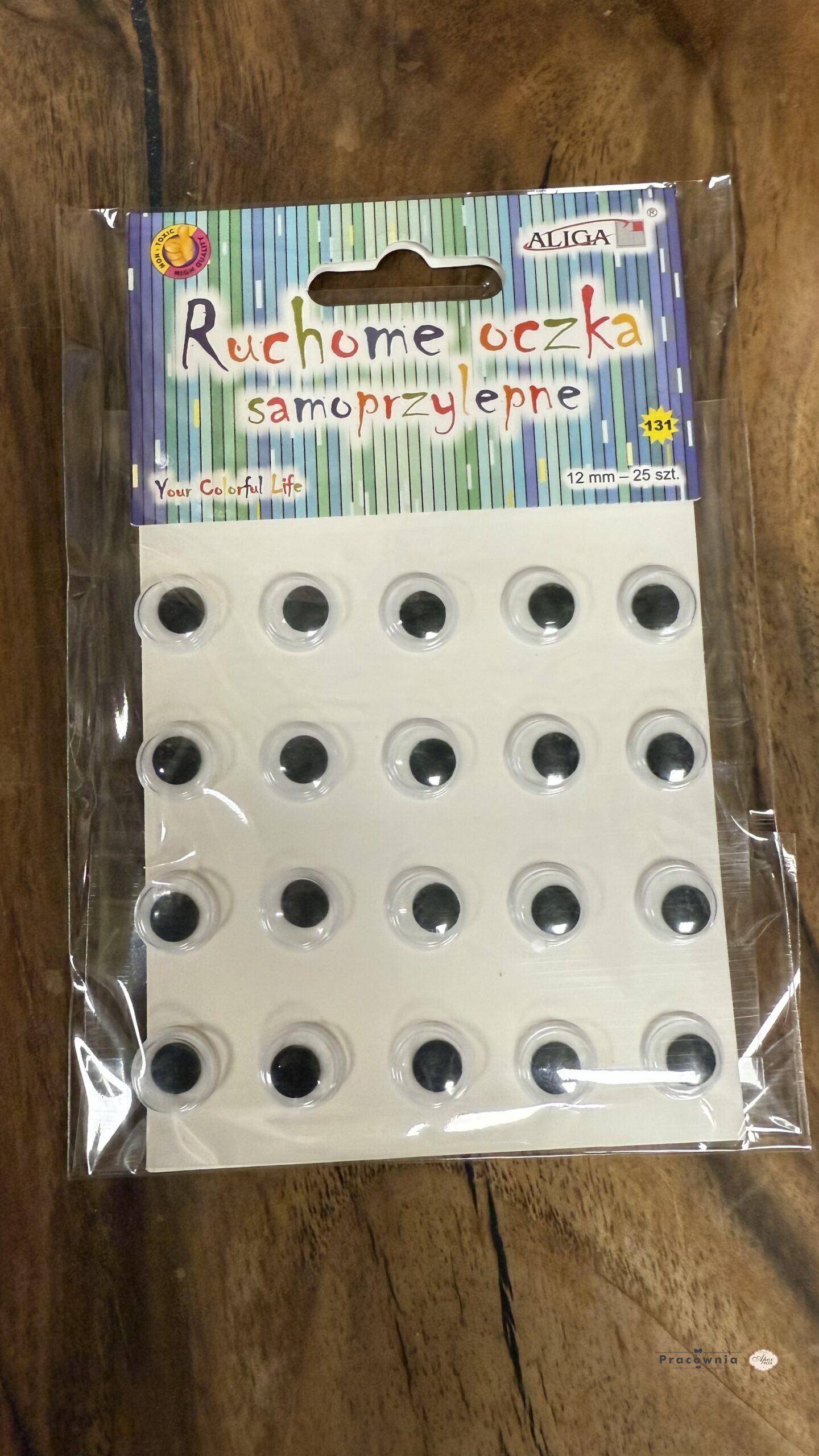 Oczka samoprzylepne 12 mm ruchome 25 sztuk w opakowaniu. SKU: MT-6407 EAN: 5902150626862