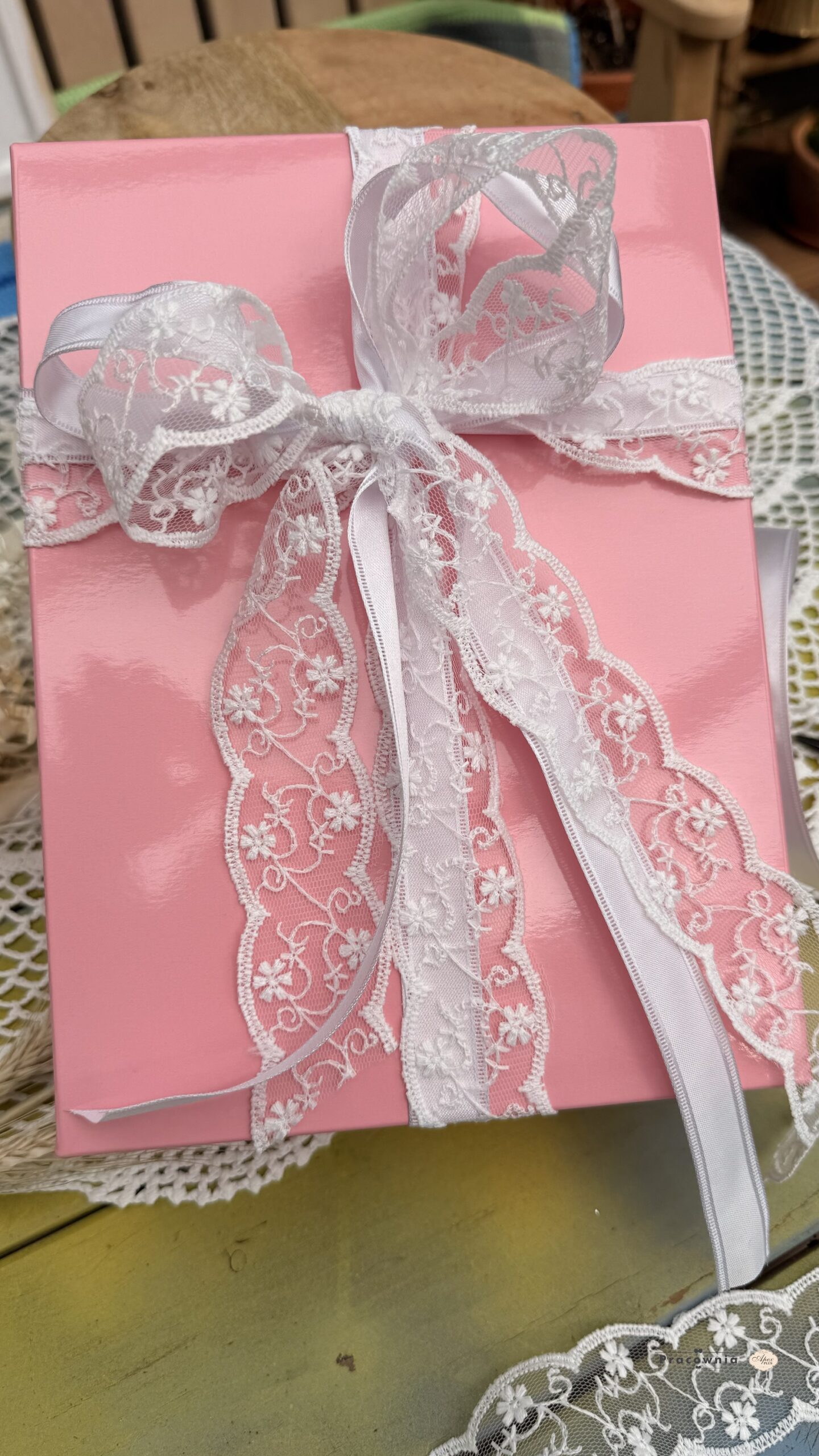 Pakowanie prezentu w pudełko ozdobne o wymiarach : 25*18*7 cm, z użyciem wypełniacza oraz ozdobnych wstążek. Możliwość wyboru koloru pudełka : różowe, białe, złote,srebrne, kremowe. SKU: PAKOWANIE2 EAN: