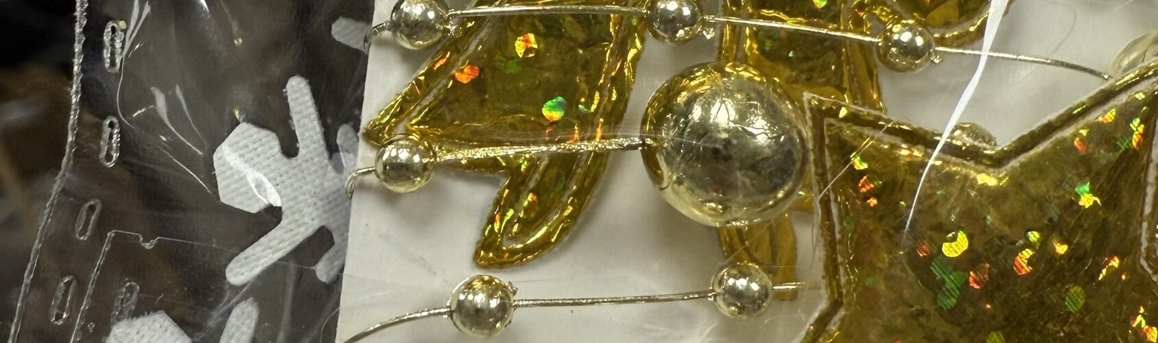 Perełki, gwiazdki i śnieżynki na żyłce złote, długość : 2 m SKU: WSP-4428 EAN: 5902150684428