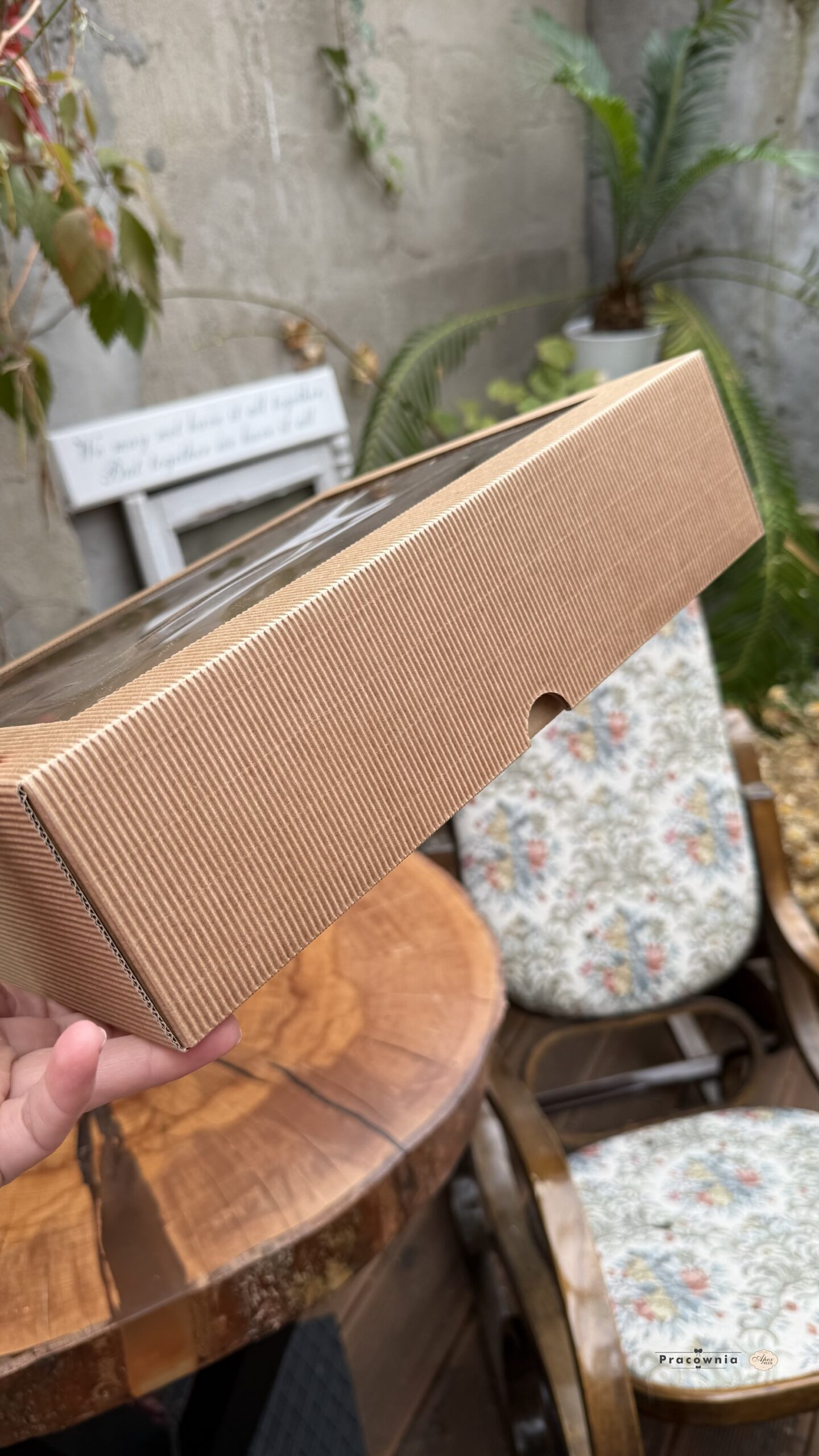 Pudełko ozdobne kraft karbowane z wysokiej jakości tektury falistej. Przezroczyste okienko pięknie eksponuje zawartość, jednocześnie chroniąc przed uszkodzeniem. Wymiary: 315*250*85mm SKU: PUD/07 EAN: