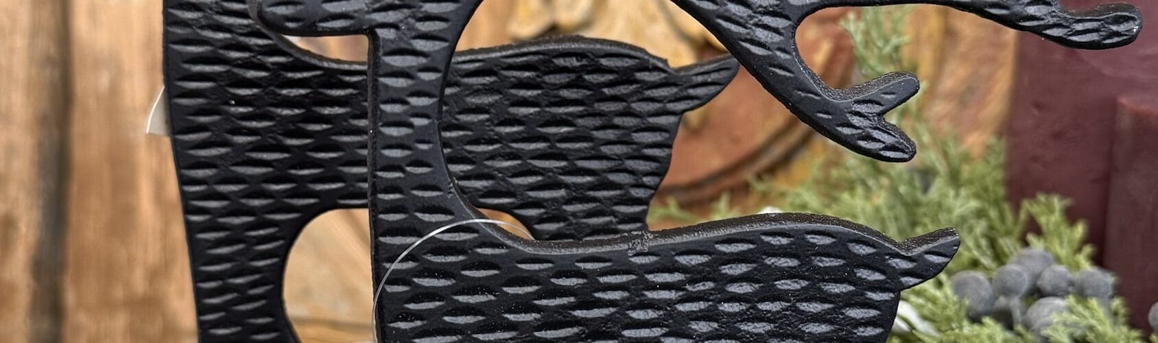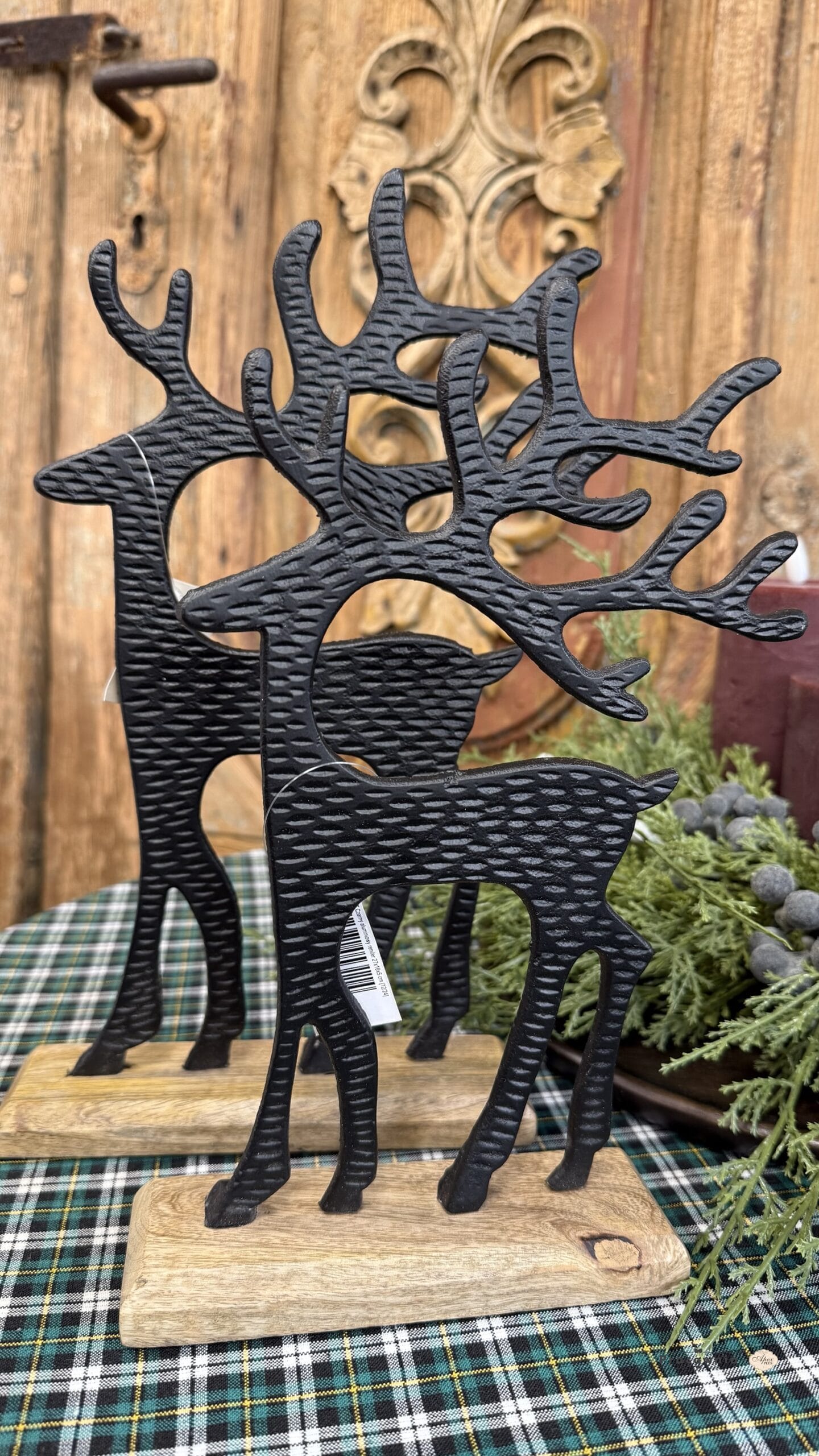 Renifer metalowy komplet 2 szt. Idealny jako element świątecznego wystroju. Wykonane z metalu, osadzone na drewnianej podstawie. wys. 27 i 30 cm. SKU: 053114 EAN: 5902581053114