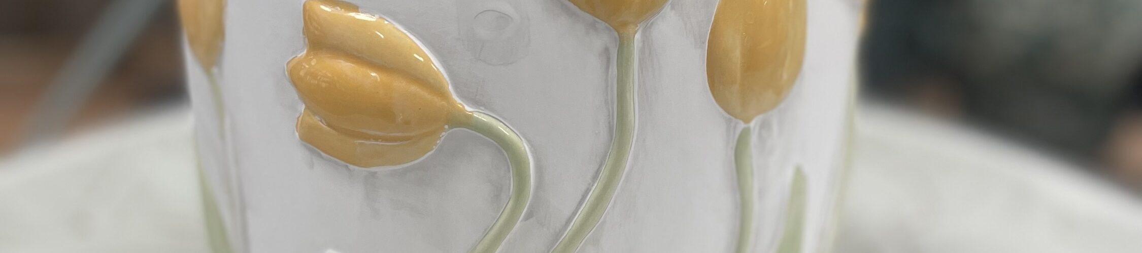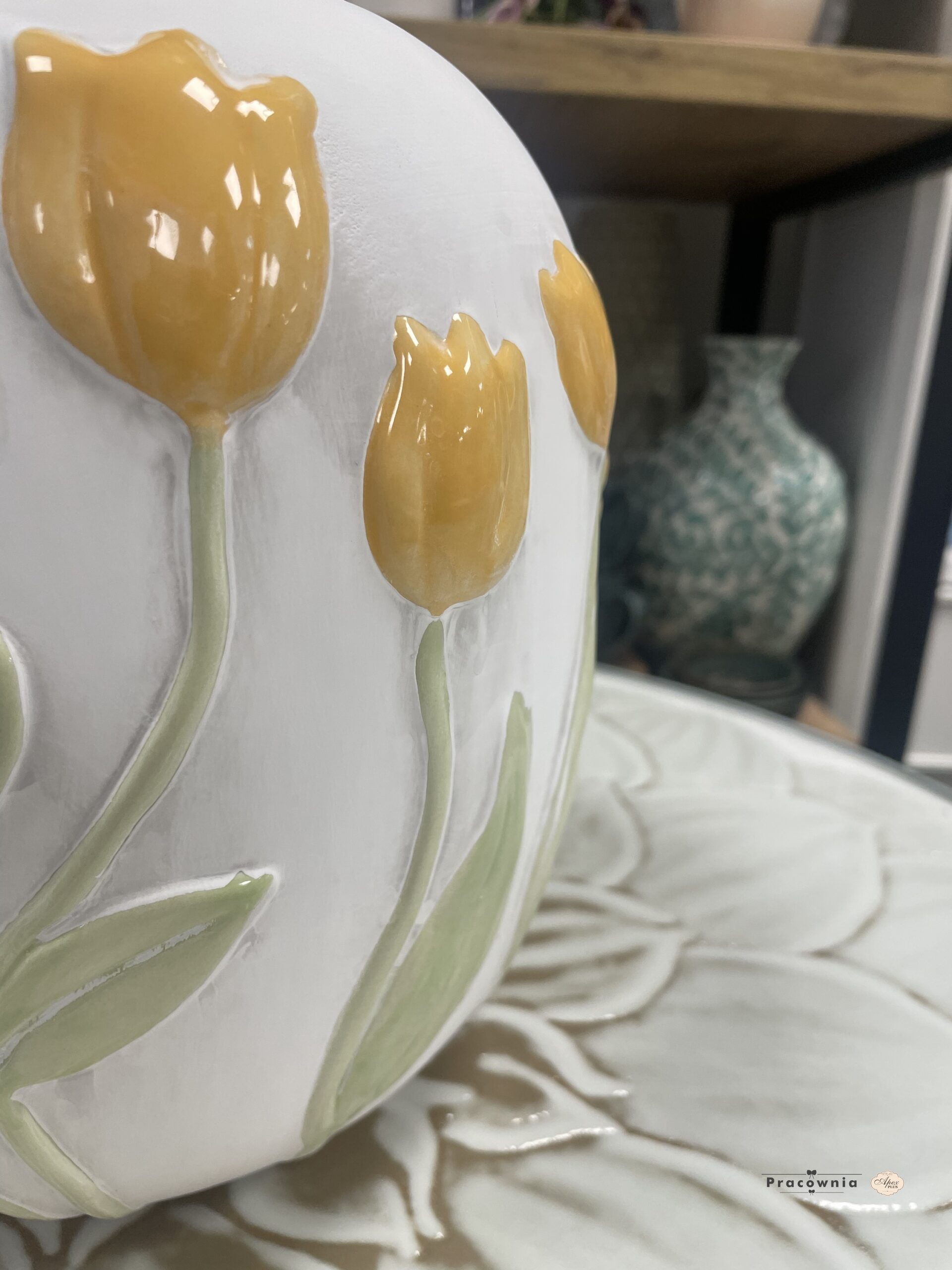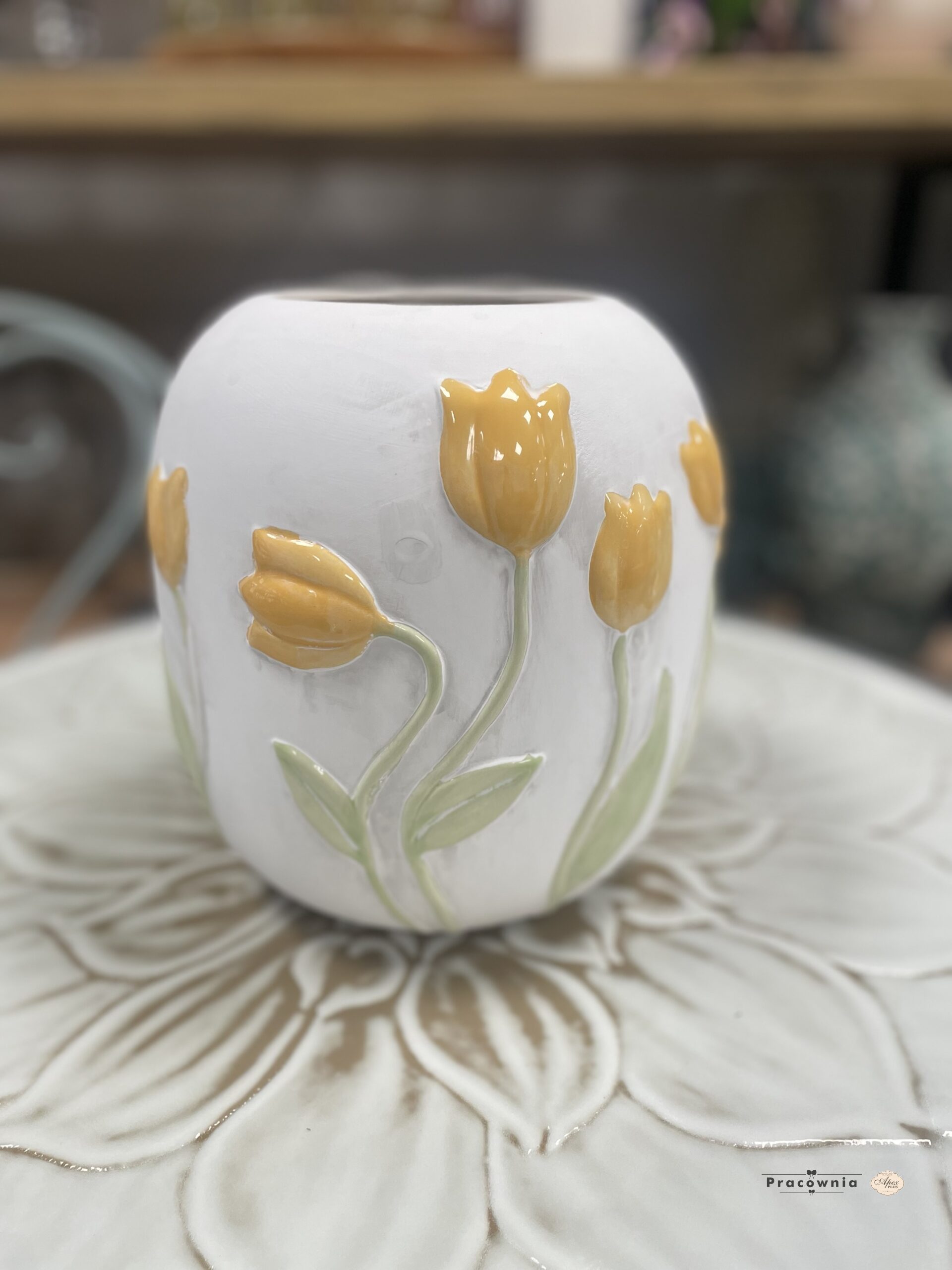 Wazon ceramiczny biały w pomarańczowe tulipany wys.20cm /szer.18cm SKU: WAZON CERAMICZNY TUL EAN: 8720725250789