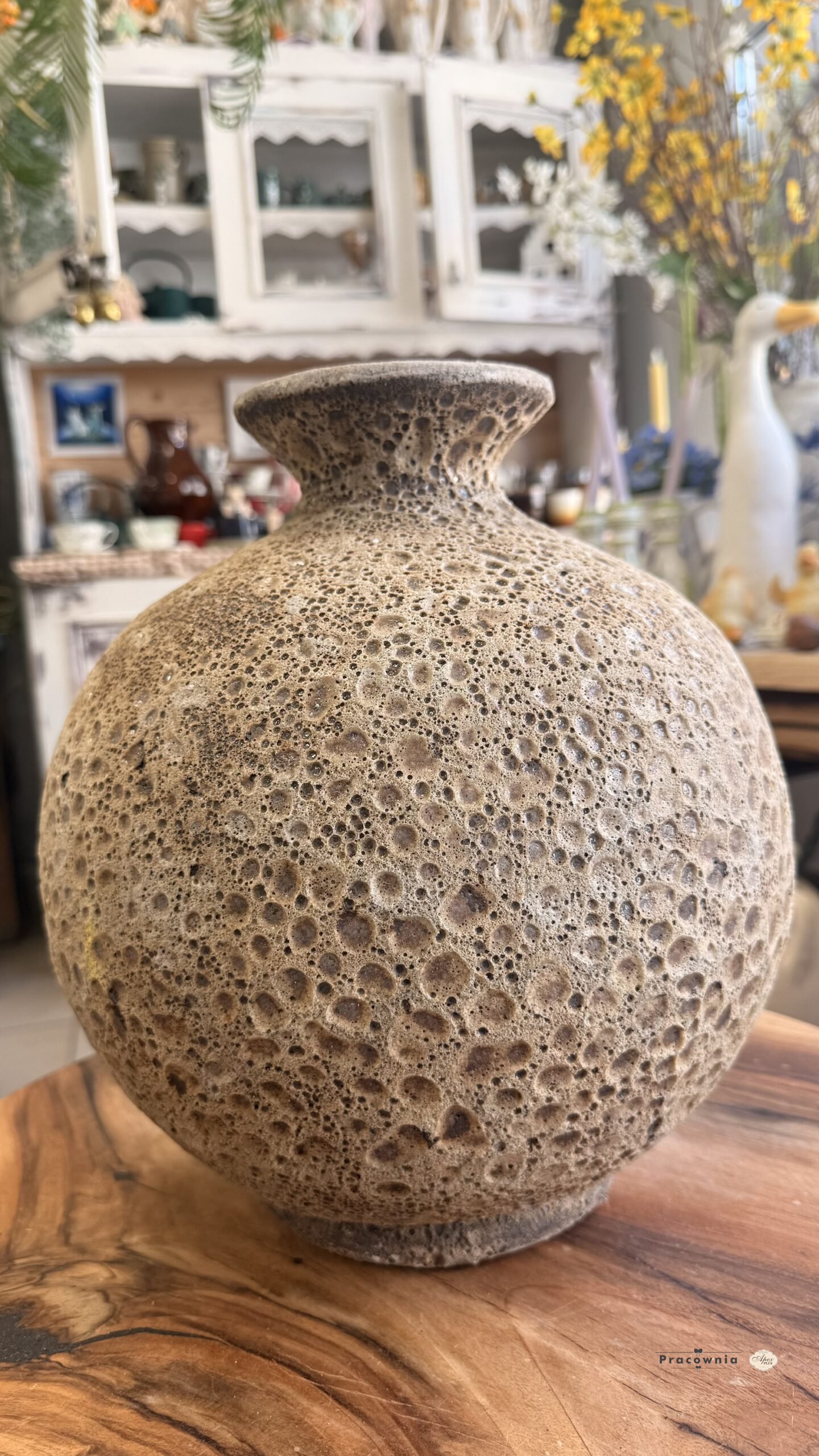 Jak z innej planety – wazon o księżycowej fakturze i kulistym kształcie przyciąga wzrok od pierwszego spojrzenia. Wykonany z ceramiki o chropowatej, porowatej powierzchni, wygląda jakby był stworzony z zastygłej lawy lub skalnej materii. Wymiary: 28x28x33 SKU: CRFAVPV013 EAN: 5907177817521