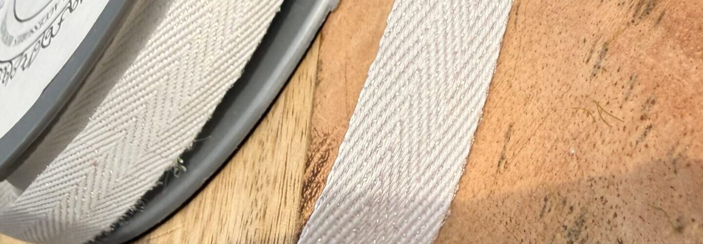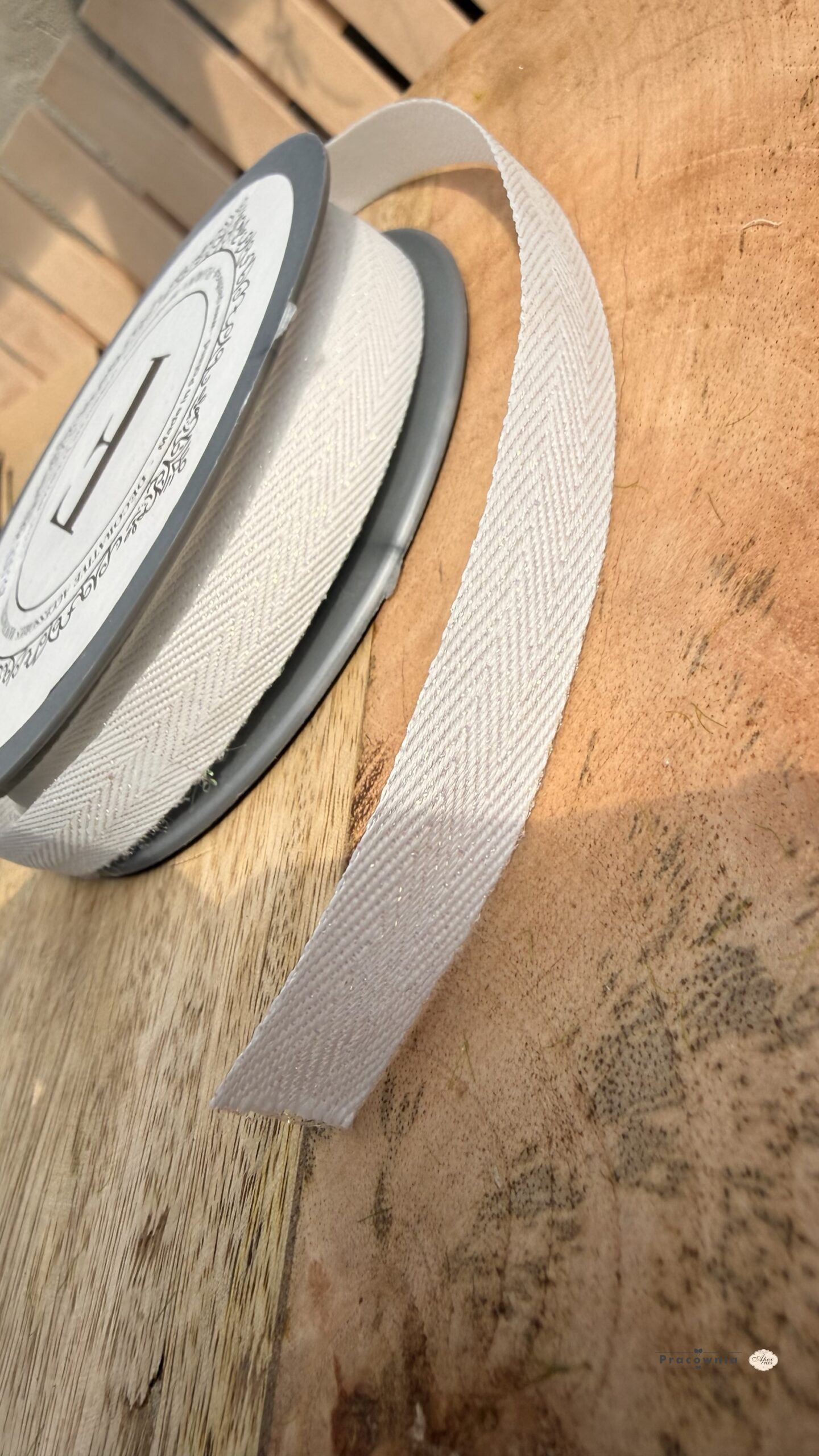 Wstążeczka materiałowa biała opalizująca Szerokość : 1.5 cm Długość : 10 y SKU: 225843 EAN: 5907588885843