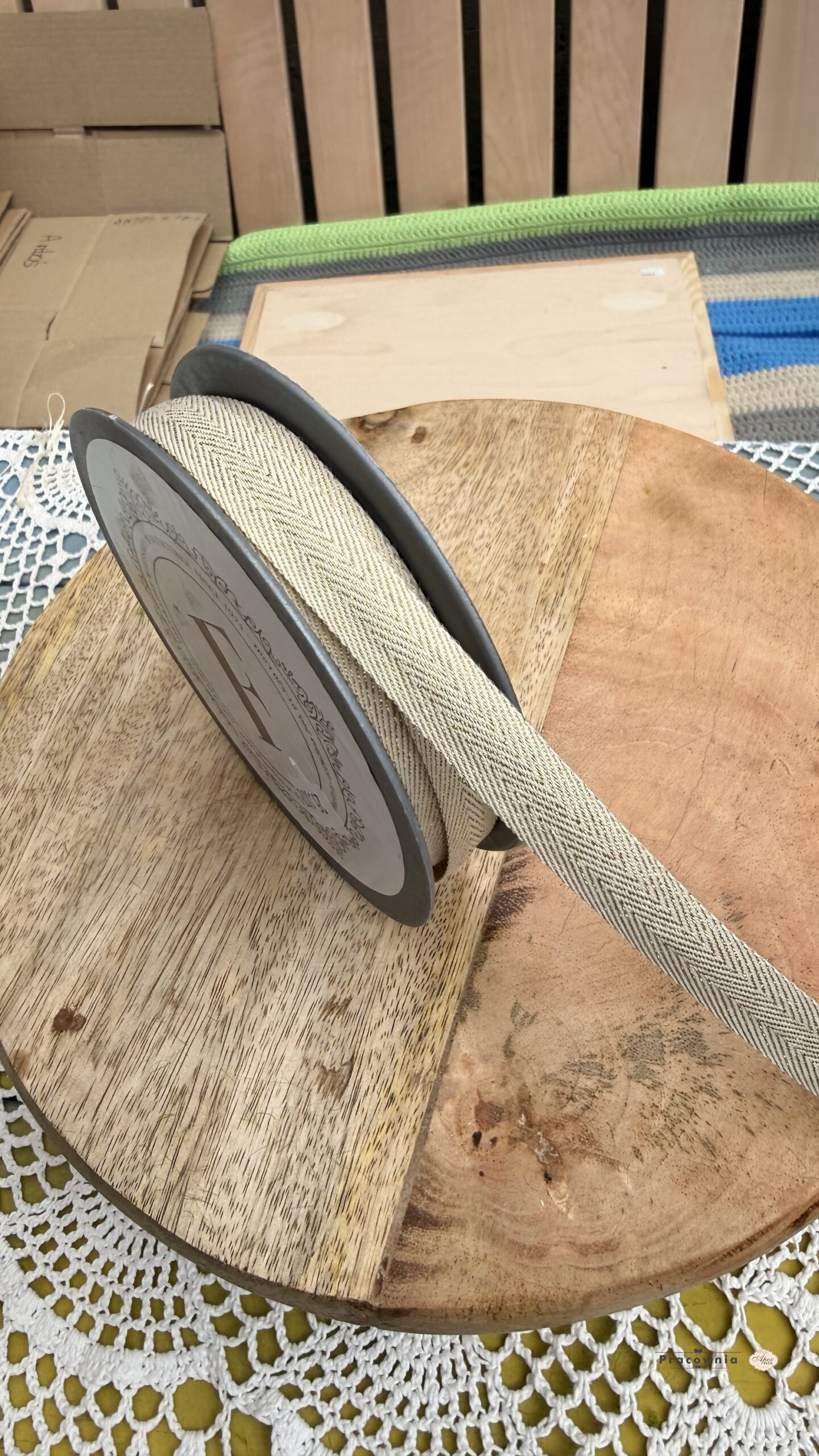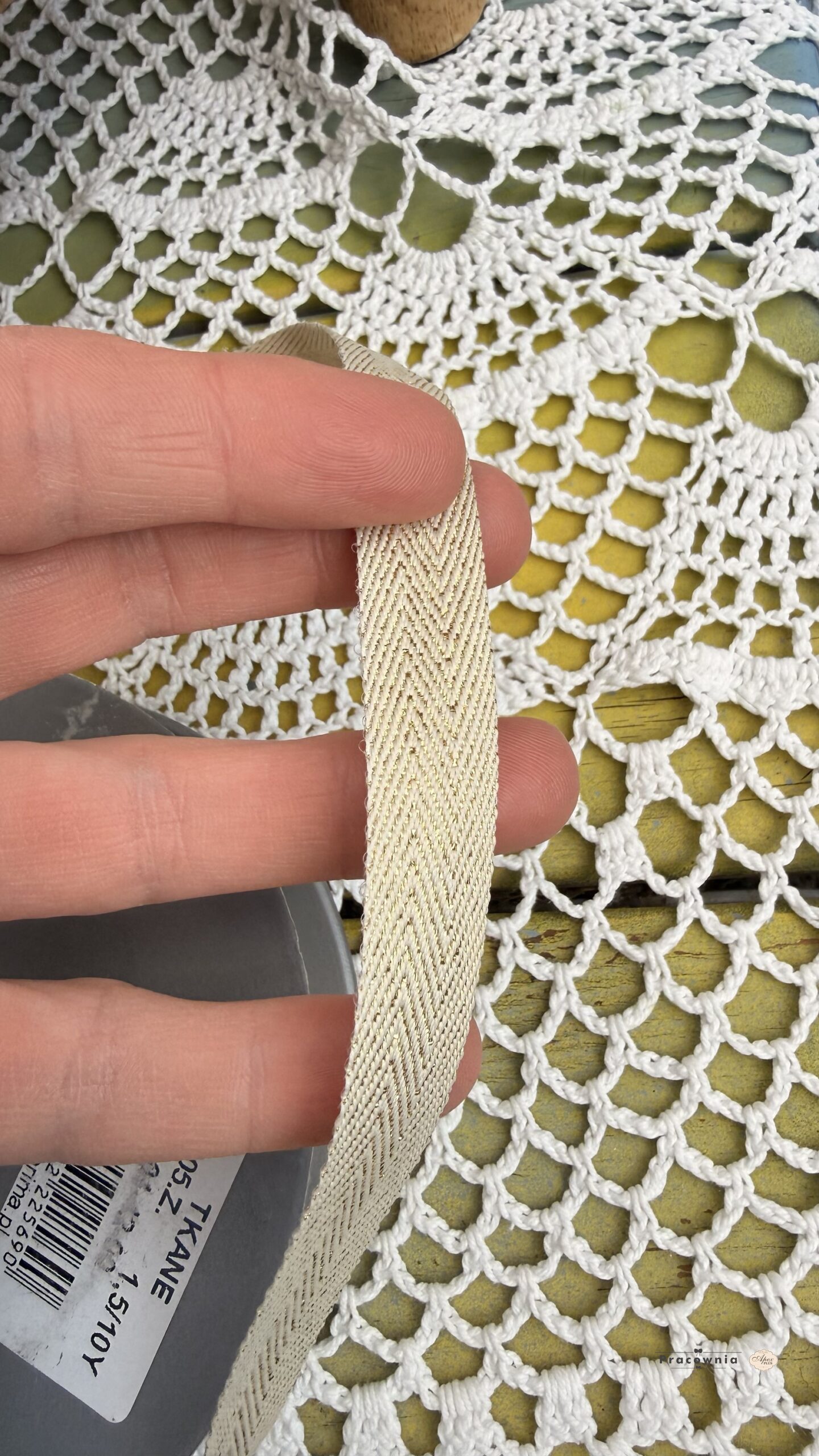 Wstążeczka materiałowa ze złotą nitką Szerokość : 1.5 cm Długość : 10 y SKU: 225690 EAN: 5907582225690