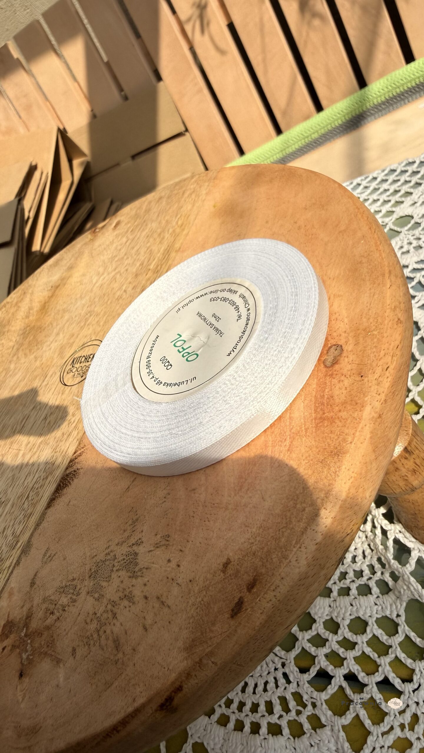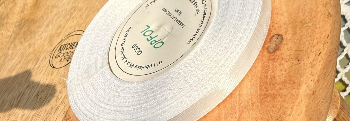 Wstążeczka satynowa biała Szerokość : 6 mm Długość : 32 mb SKU: 660012 EAN: 5902188660012