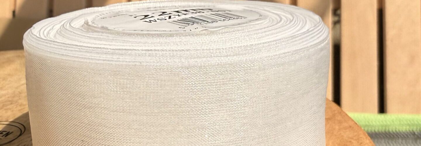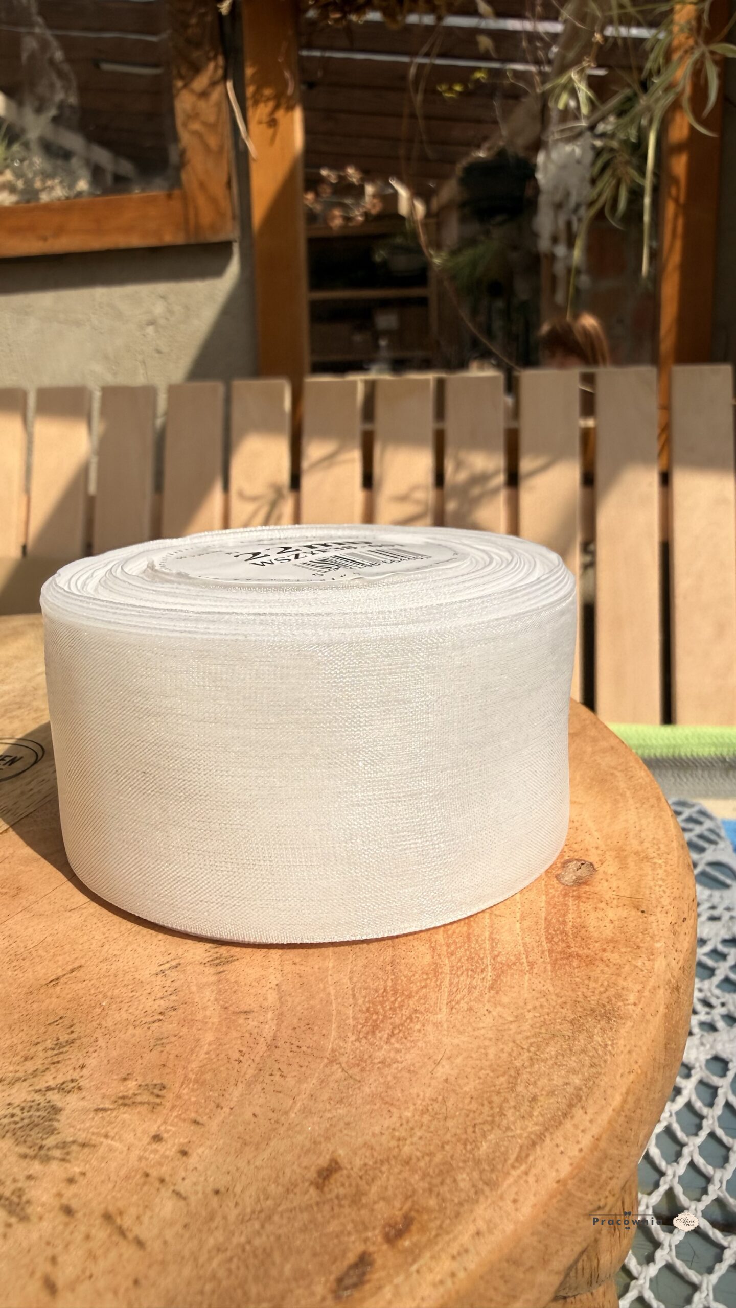 Wstążka szyfon biały Szerokość : 4 cm Długość : 22 mb SKU: WSZYF38-001 EAN: 5902188664461