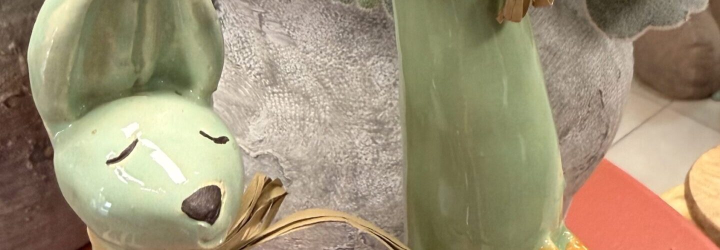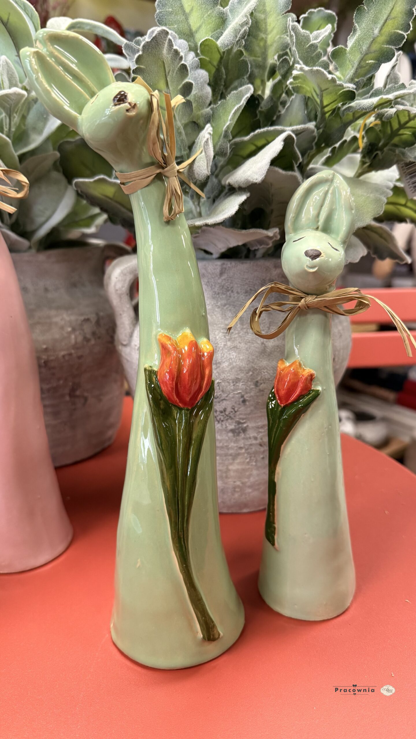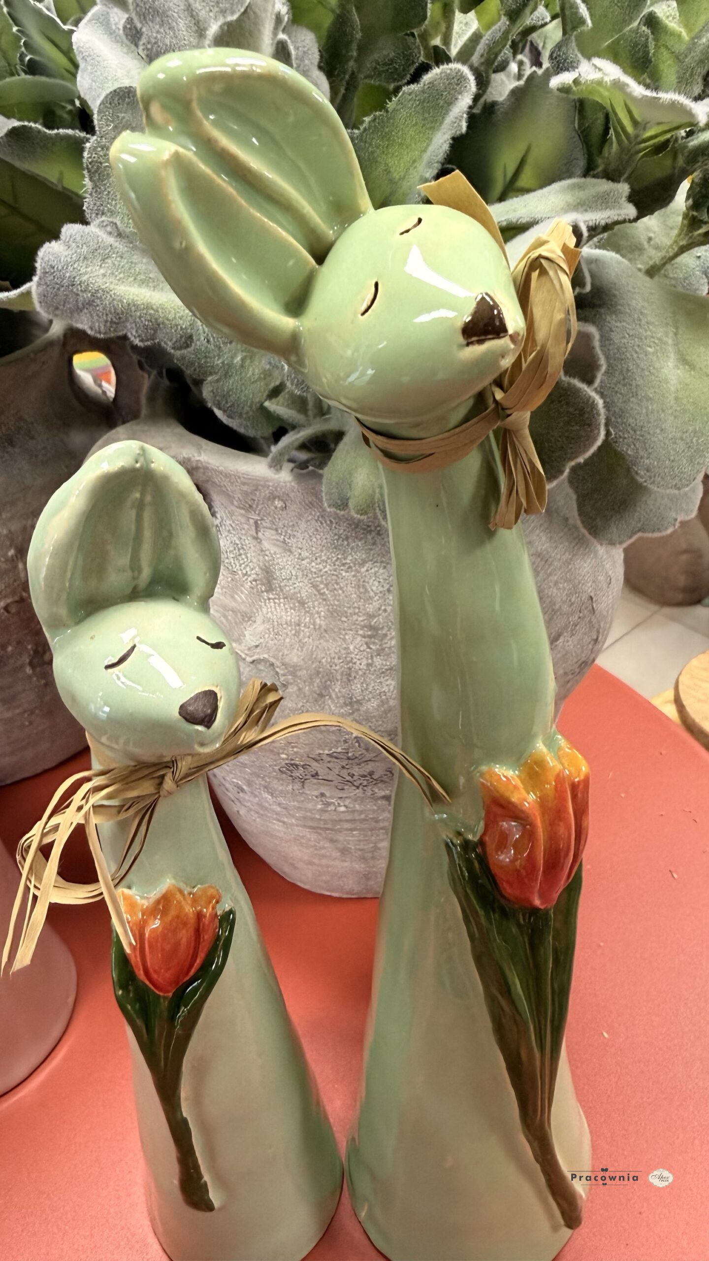 Zajączek Truś para – dwa urocze zajączki duży i mały, wykonane ręcznie. Doskonale sprawdzą się jako dekoracja wiosenno-wielkanocna a także jako ciekawy pomysł na prezent. Wys. 30 cm, 20 cm. SKU: AN-203/5 EAN: